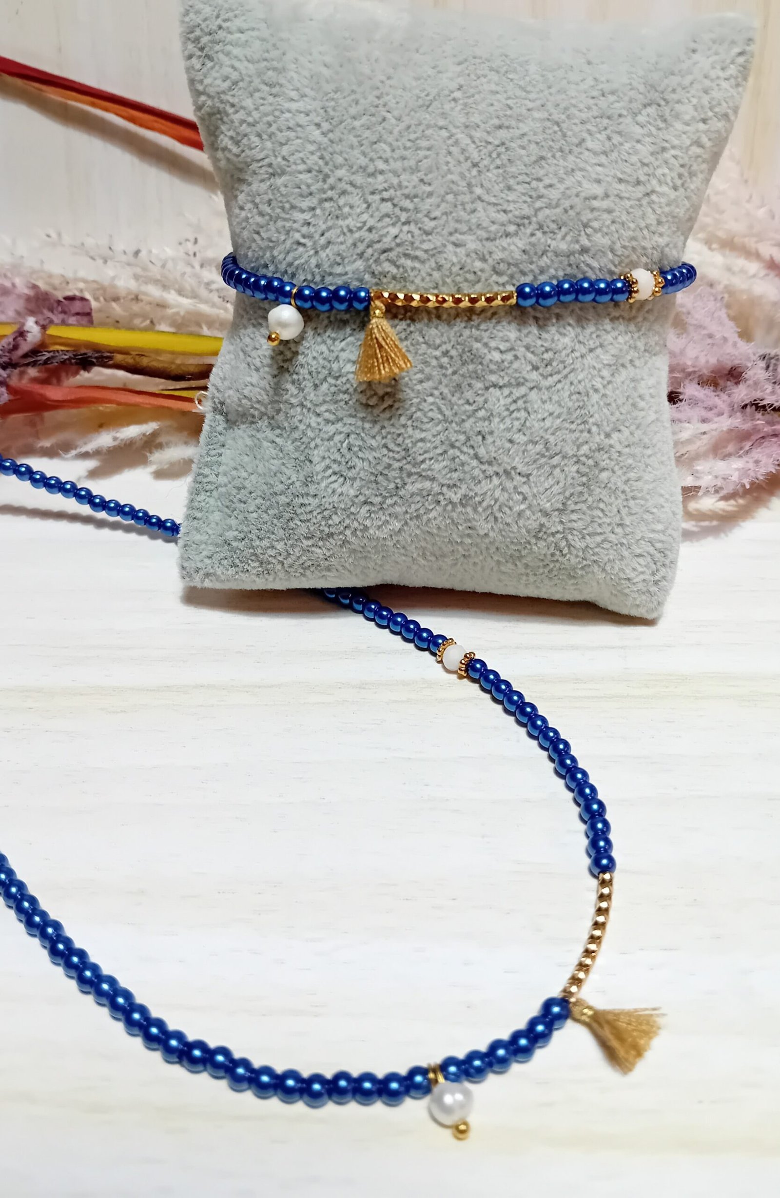 ΧΕΙΡΟΠΟΙΗΤΟ ΚΟΛΙΕ ΑΠΟ ΠΕΡΛΕΣ ΜΠΛΕ ΚΑΙ ΣΤΟΙΧΕΙΟ ΣΩΛΗΝΑΣ