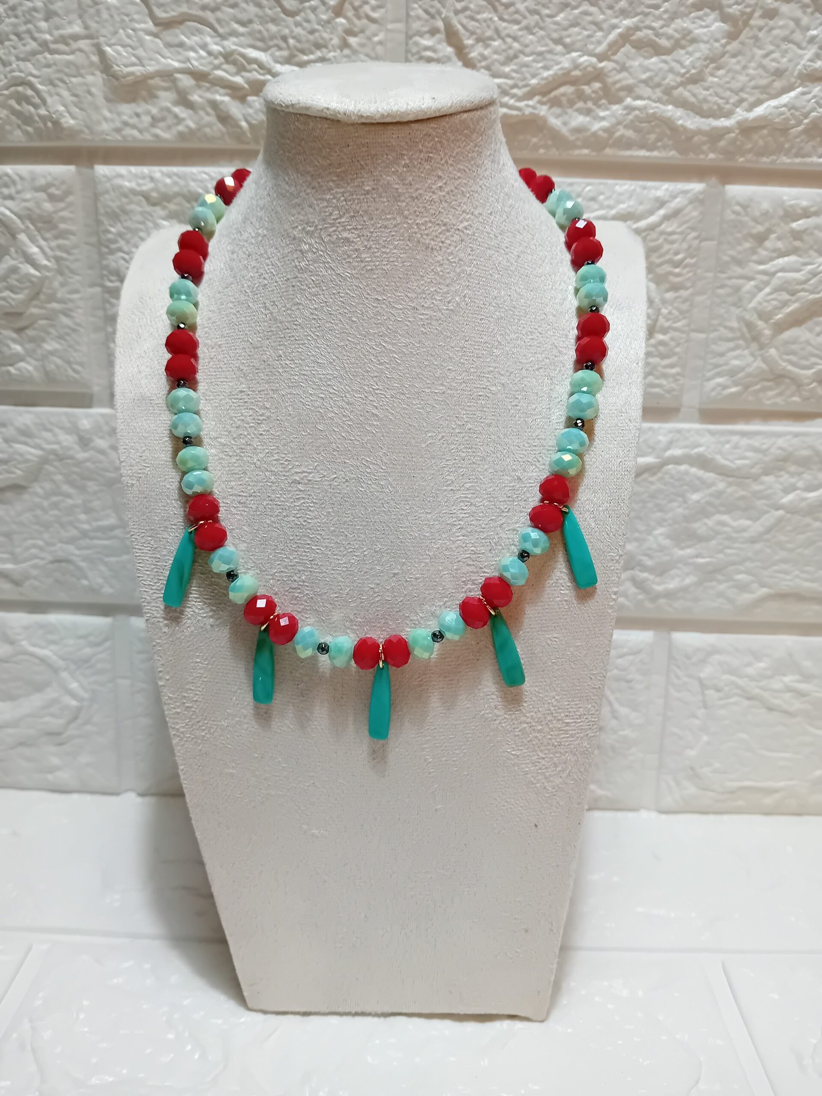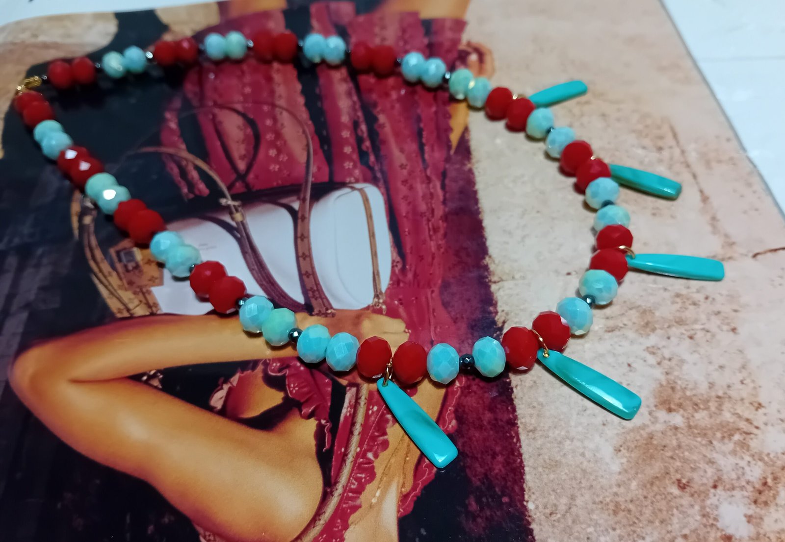 ΧΕΙΡΟΠΟΙΗΤΟ ΚΟΛΙΕ ΜΕ ΚΡΥΣΤΑΛΛΑ ΚΟΚΚΙΝΑ ΚΑΙ ΤΙΡΚΟΥΑΖ